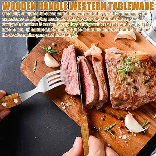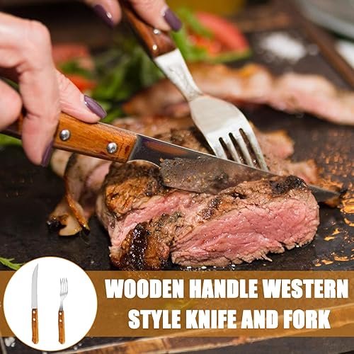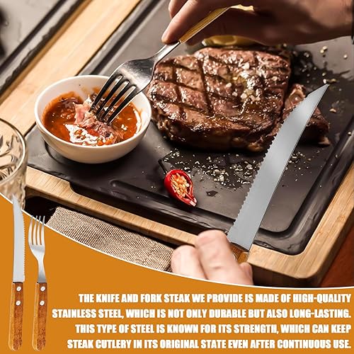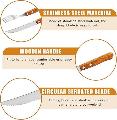 BAIFULAI Lot de 30 couverts à steak en acier inoxydable, 15 couteaux et 15 fourchettes, pour 15 personnes, ne passe pas au lave-vaisselle (marron)