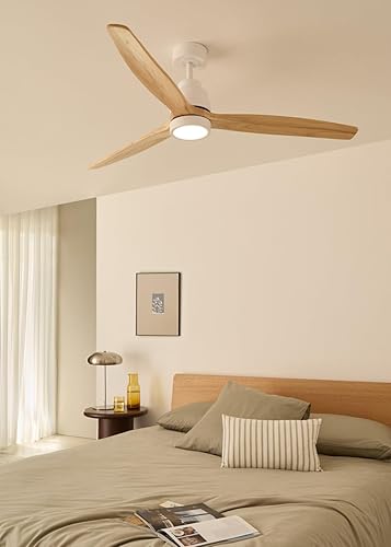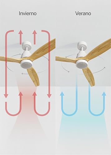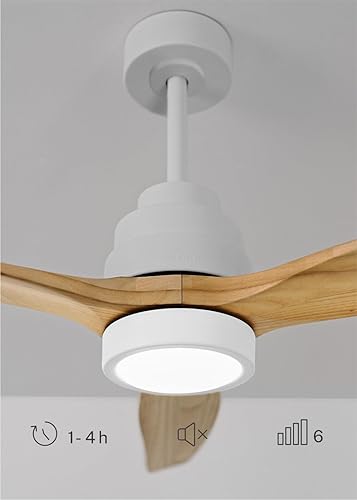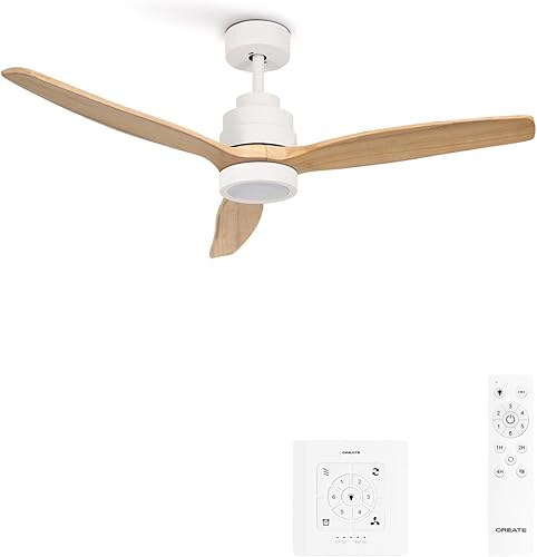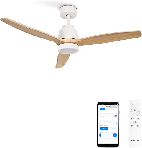 CREATE / WINDSTYLANCE L/Ventilateur de plafond avec lumière blanc pales bois clair avec Wifi et télécommande / 40W, Silencieux, Ø152 cm, 6 vitesses, minuteur, fonction été-hiver, double hauteur