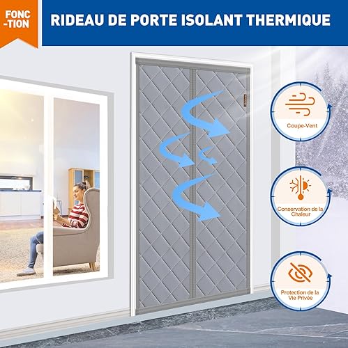 MAGZO Rideau de Porte Isolant Thermique 90 x 200 cm, Rideau de Porte à Isolation Magnétique, Rideau Anti Froid Porte Auto-Absorbant, Gris