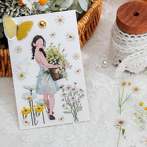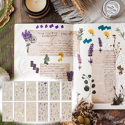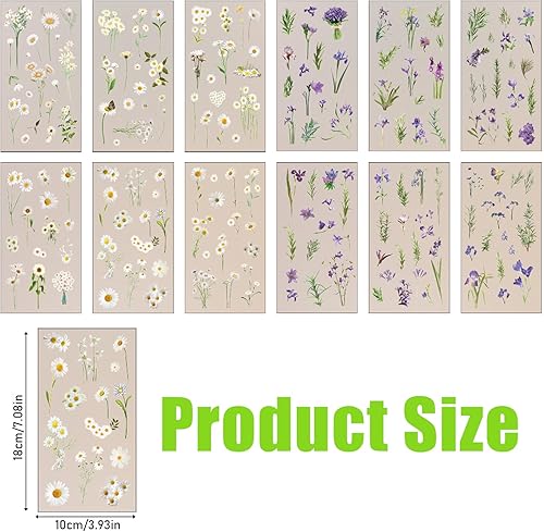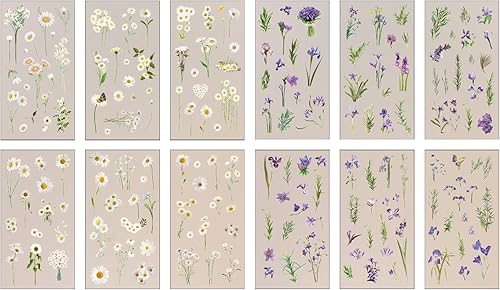 185 Pièces Autocollants de Fleurs pour Scrapbook, Scrapbooking Autocollant, 12 Pages Autocollants Plante Florale, Transparente Fleurs Autocollant pour Journal DIY Artisanat Album Téléphone