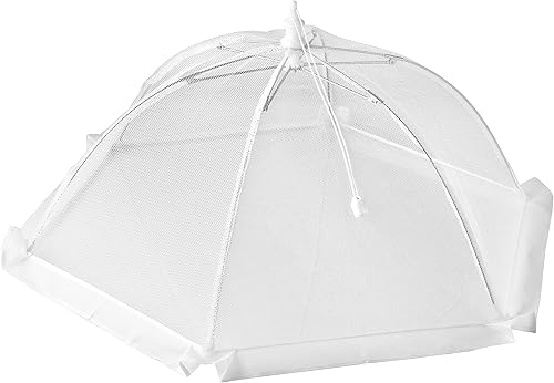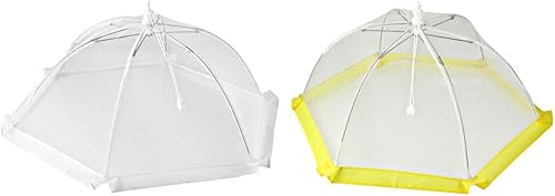 Fackelmann 44489 Cloche Alimentaire pour Corbeille à Fruits, Cloche en Filet, Cloche à Fruits, Plastique, Blanc, Jaune, 46 cm