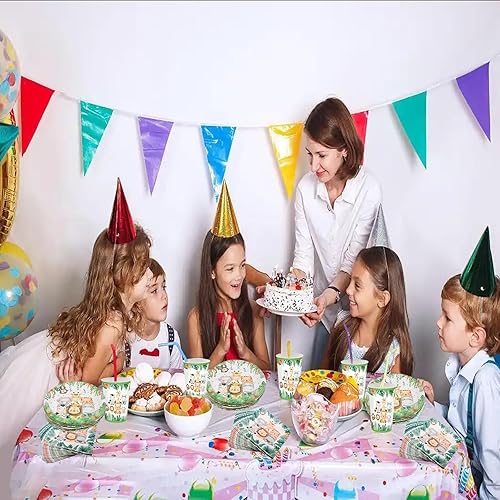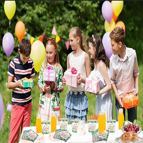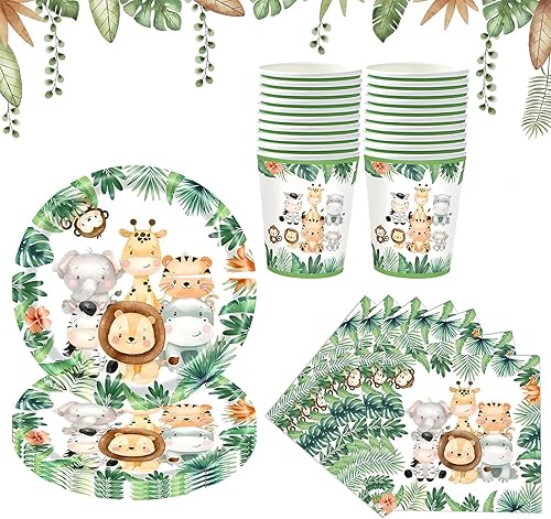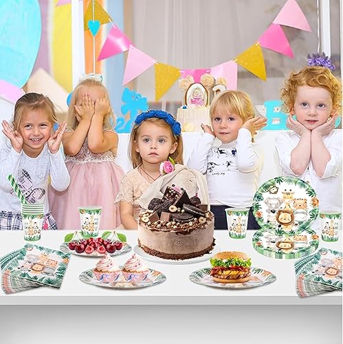 Vaisselle Jetable Anniversaire Animaux - Fournitures de Fête pour 20 Invités, Assiettes, Gobelets, Serviettes, Décoration de Fête pour Anniversaire et Baby Shower