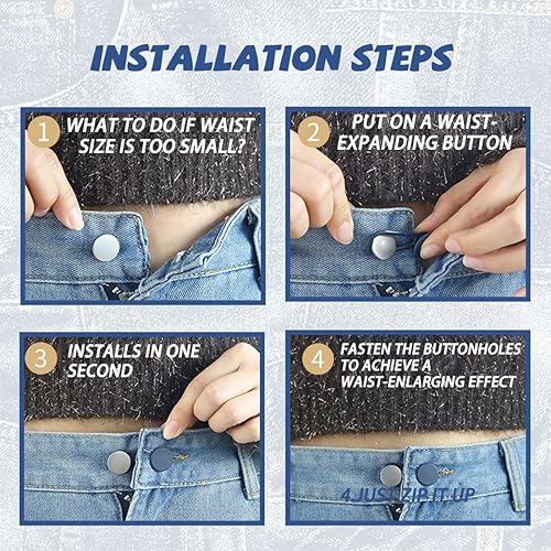 FENQURO 12 Pièces Extenseur de Taille pour Pantalons, Boutons Ajustables, Kit d’Extension de Boutons pour Jeans, Élargisseur de Ceinture Élastique pour Hommes et Femmes, Extenseur pour Grossesse