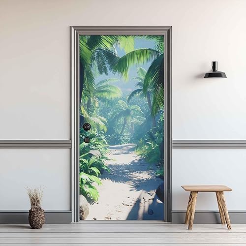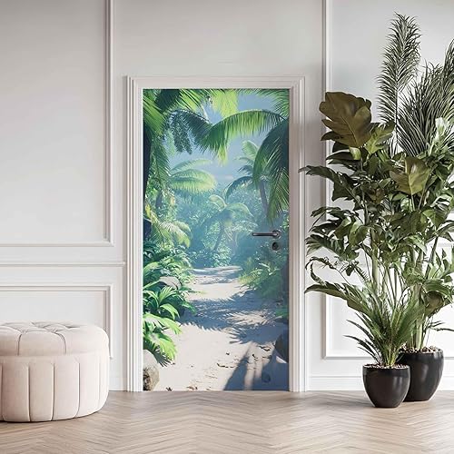 Sticker Porte Palmier, Sticker Mural Porte 73x205 cm Forêt Tropicale Jungle Cocotier Plante, pour Salon Chambre Décoration De La Maison Muraux Imperméable Stickers Amovibles