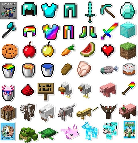 dinghaole 100 Pièces Autocollants Pixels, Figurine Vinyle Stickers Imperméable Pour Fête, Scrapbooking Ordinateur Portable Skateboard Pour Étudiants Adolescents