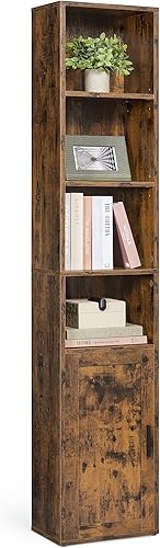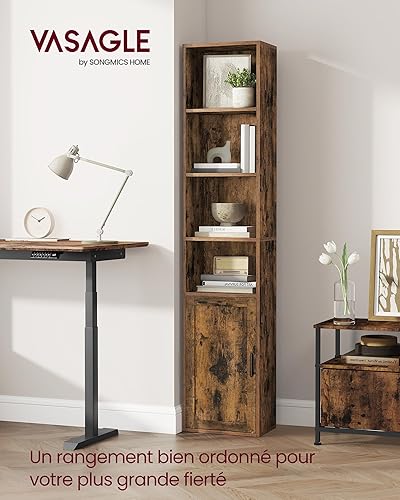 VASAGLE Custos Collection - Bibliothèque, Étagère Haute sur 6 Niveaux, avec Portes, Meuble de Rangement Ouvert, 24 x 60 x 175 cm, pour Salon, Bureau, Salle à Manger, Marron Rustique LBC402K01