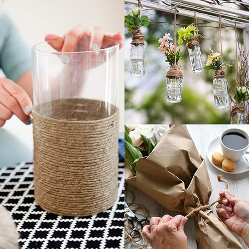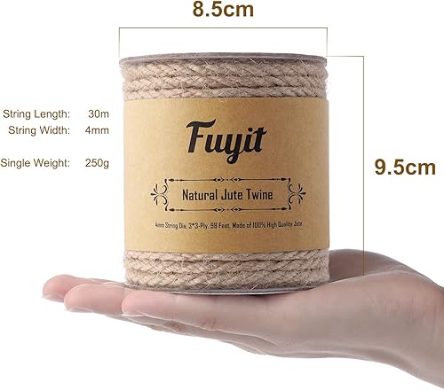 Fuyit Ficelle Jute 4mm, 98 Feet Naturel Biodégradable Jute Corde de pour Travaux Manuels, Jardinage, Emballage, Décoration