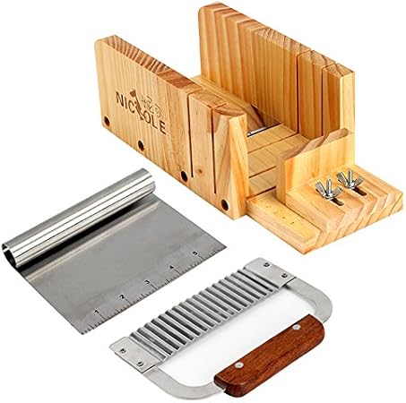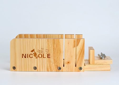 Nicole Soap Cutter Tool Set-3 Boîte de coupe de pain de bois réglable multifonction avec lame ondulée et droite en acier inoxydable