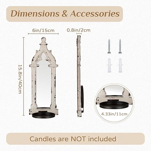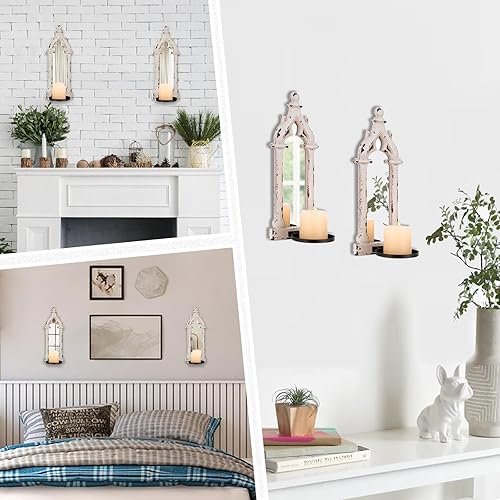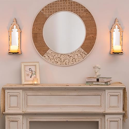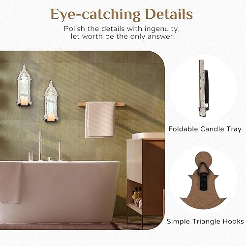 Walasis Lot de 2 bougeoirs muraux vintage en bois rustique pour salle de bain, salon Blanc