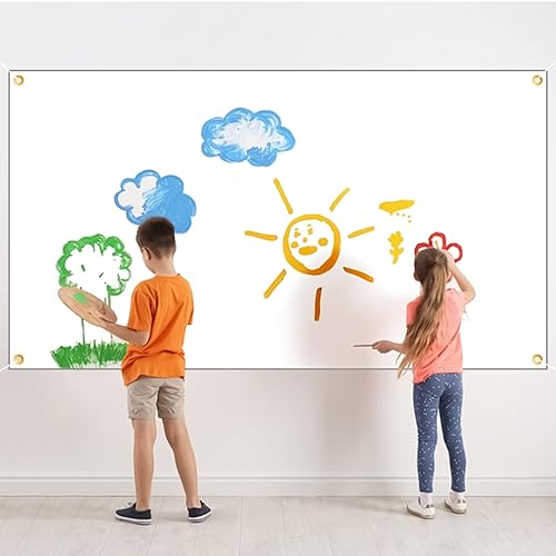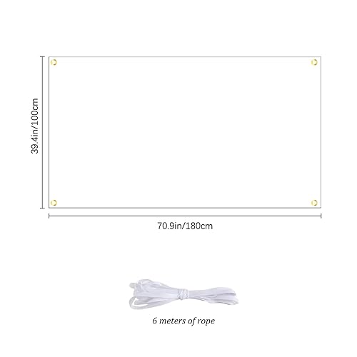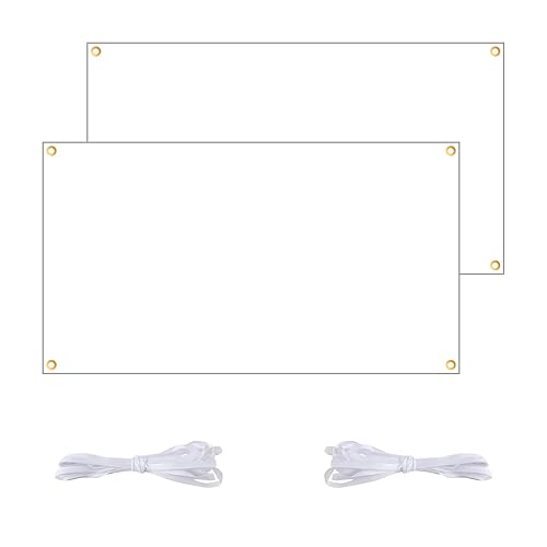 2 Pièce Banderole Personnalisée,Grandes Bannières Vierges Blanche, 180x100 cm, Banniere Vierge a Peindre avec Corde de Suspension 6m, pour Extérieur Intérieur Affichage des Activités de Bricolage