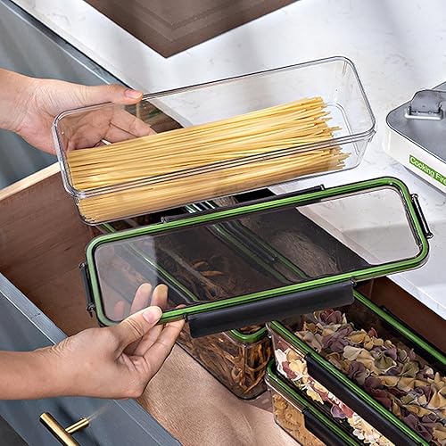 Récipient de rangement pour pâtes – Boîte de rangement pour spaghettis en verre hermétique avec couvercle en bambou