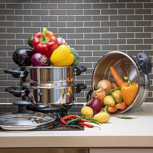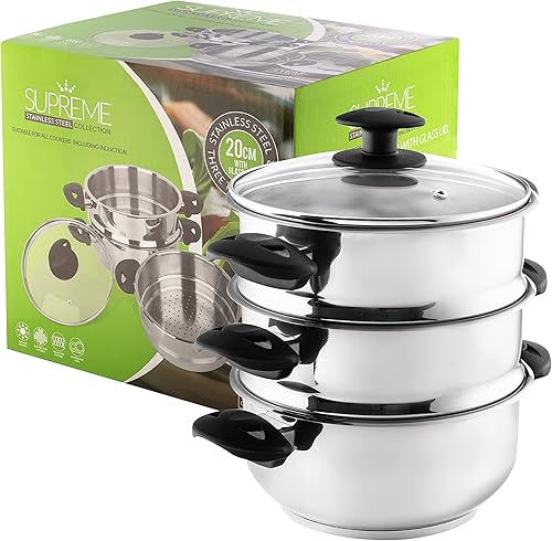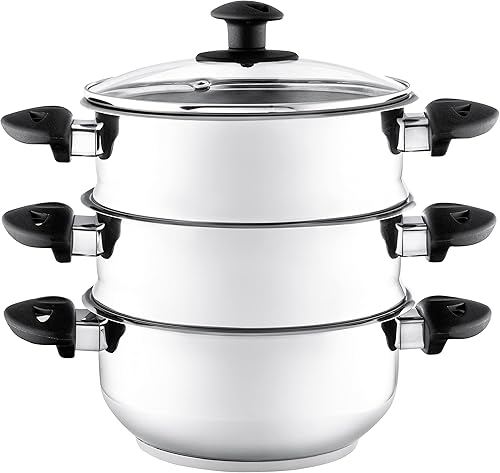 Stainless Steel Collection Cuiseur Vapeur 3 étages en Acier Inoxydable 20 cm