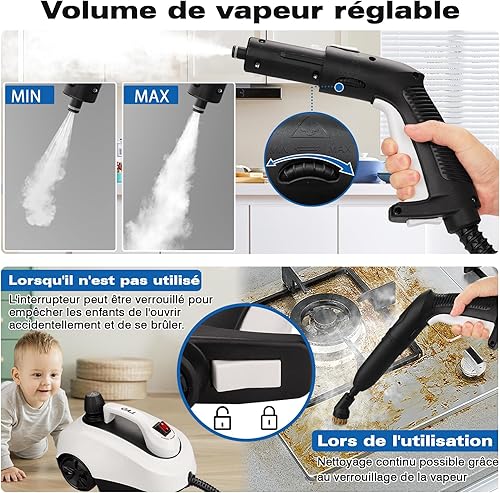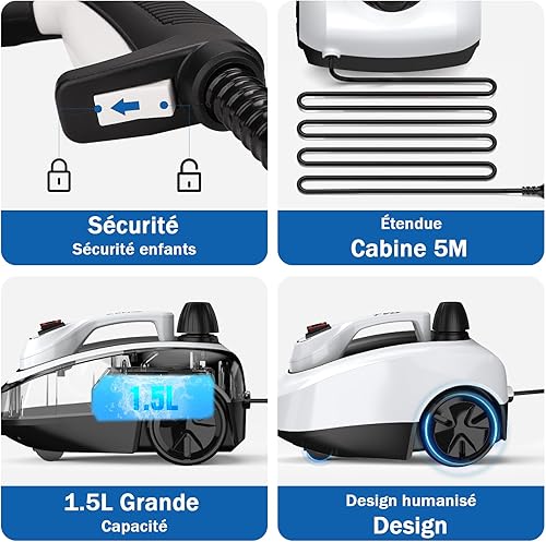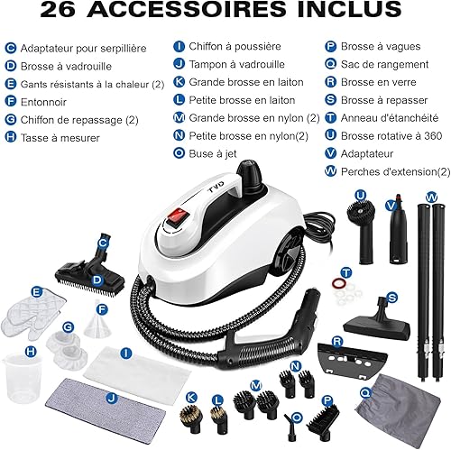 TVD Nettoyeur Vapeur,Multi-usage Nettoyant Vapeur,nettoyeur vapeur pour Canapé Avec 26 Accessoires Pour Taches sur Vitres,lit,Matelas,Tapis,Voiture,Cuisines- 5 mètres de Câble