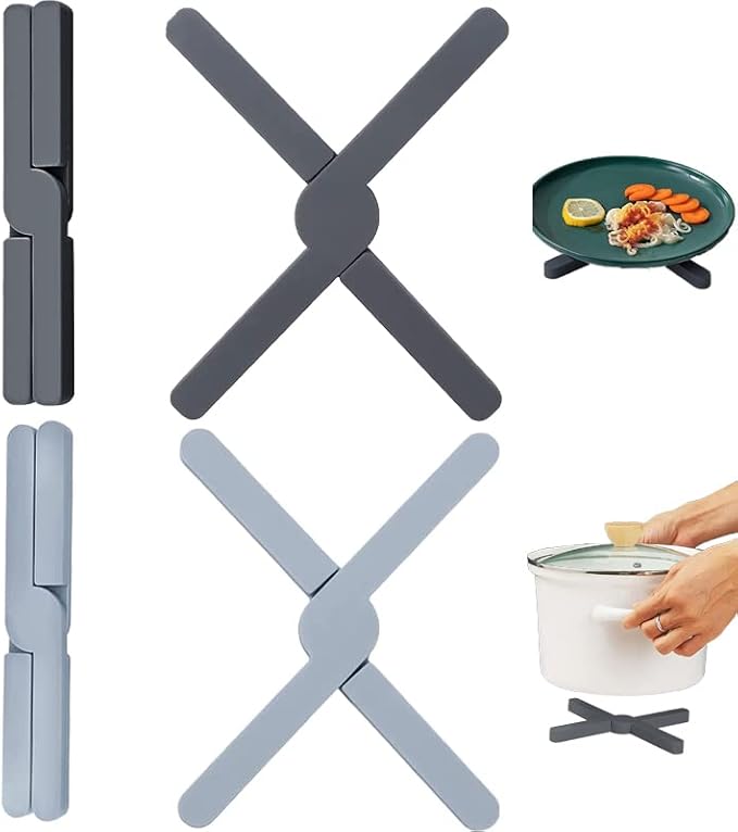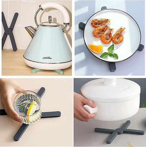 Rifrpha 4 PCS Dessous de Plat Pliables en Silicone Dessous de Plat Silicone Croix Dessous de Plat in Silicone Antidérapant Coussin d'Isolation Thermique En Silicone Pliable pour Pot, Assiettes, Poêles