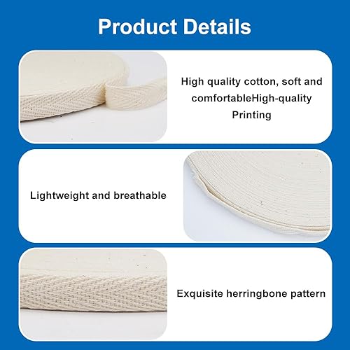 Biais de Coton 11mm 50m, Beige Ruban en Coton, Sangle en Coton à Chevrons, Ruban de Biais Doux en Coton Sergé, Fabricant de Ruban Sergé, pour Couture Décoration Intérieure Emballage de Cadeaux