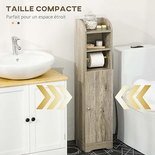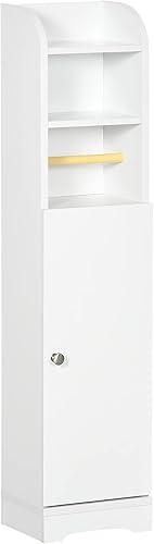 kleankin Support Papier Toilette Armoire de Rangement pour Papier Gain de Place Salle de Bain 23 x 18 x 100 cm Blanc