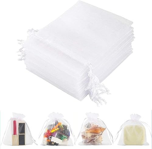 DAIRF Lot de 50 sachets en organza avec cordon de serrage pour festival, bonbons, fête et mariage (15 x 20 cm)