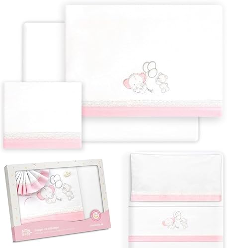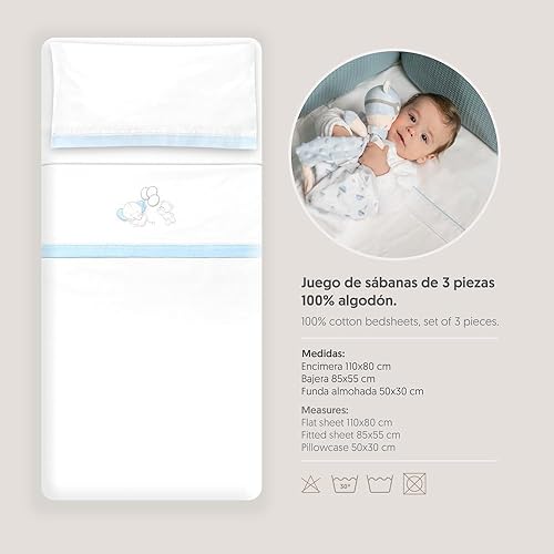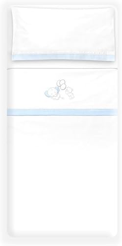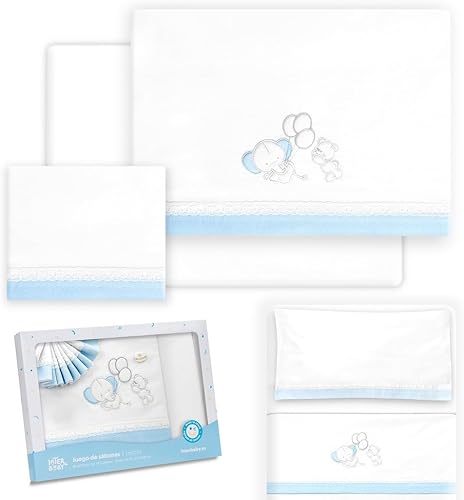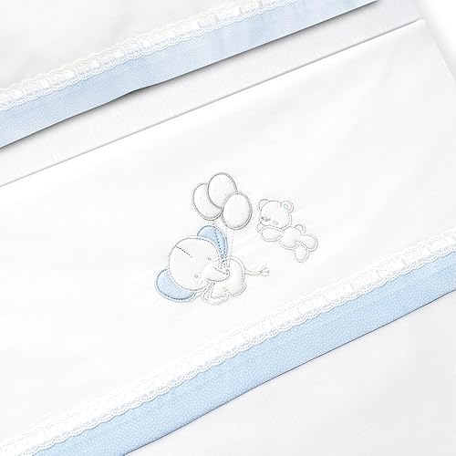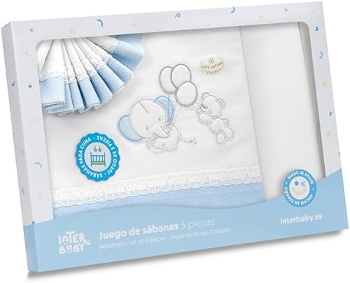 Interbaby Parure de lit bébé en Coton pour Berceau, Motif Ours, éléphant, Ballons - Ensemble 3 pièces, Drap-Housse + Drap Plat + taie d'oreiller