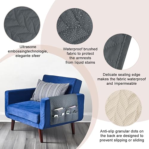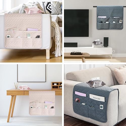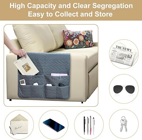 SITAKEGS Organisateur d'accoudoir de canapé, imperméable, antidérapant, sac de rangement avec 6 poches, housse de rangement pour accoudoir de canapé, housse de rangement, télécommande TV (blanc)