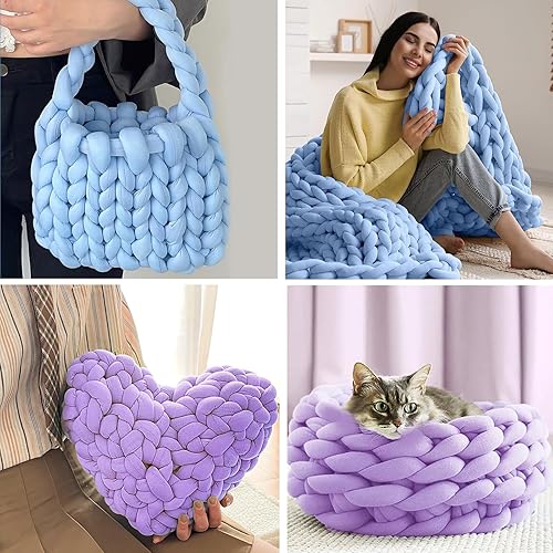 Lot de 2 pelotes de laine à tricoter avec les bras - 500 g / 25 m - Pour tricot à la main - 2 couleurs - XXL - Chunky Yarn - Fil épais - Fil à tricoter à la main - Pour sacs, couvertures, sacs