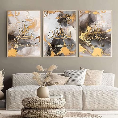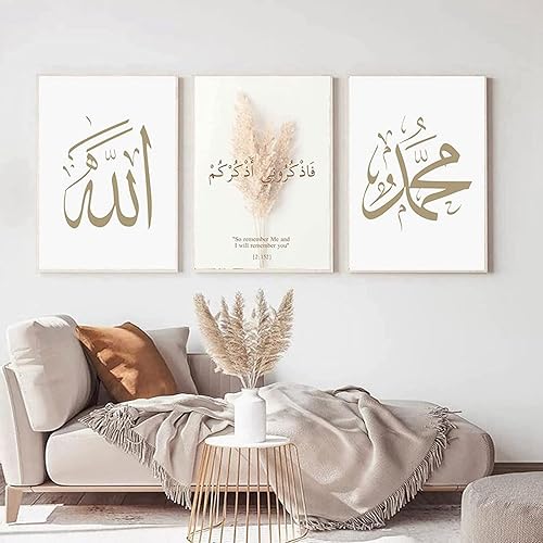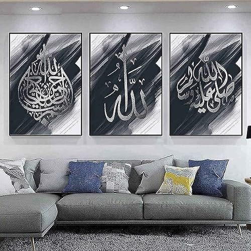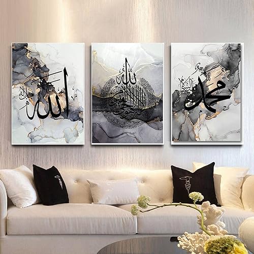 Peinture sur toile islamique,Art mural musulman Impression,Poster peinture sur toile, pas de cadre (D, 20x30cm*3)