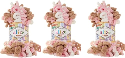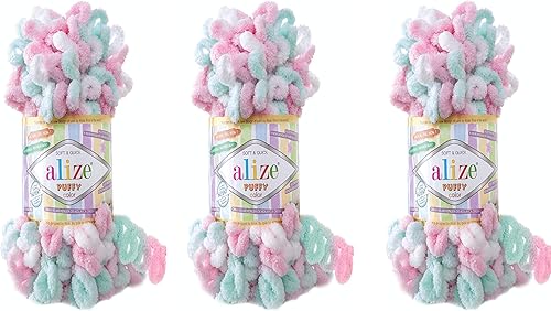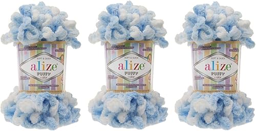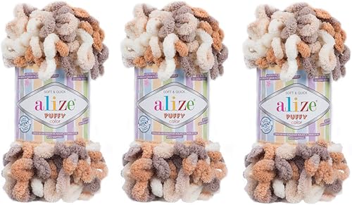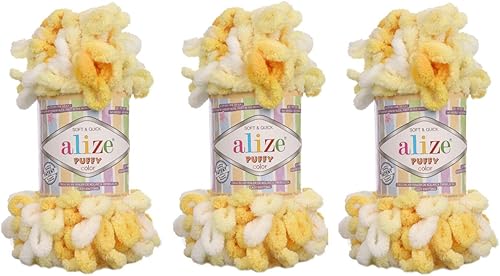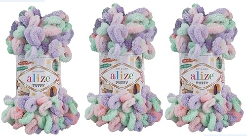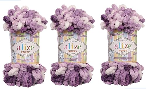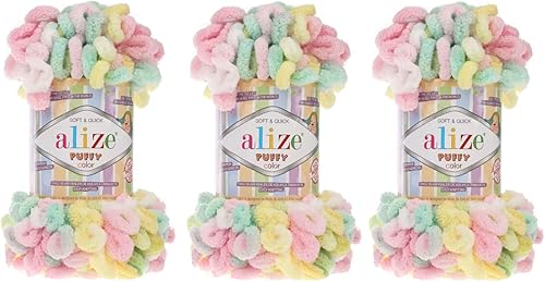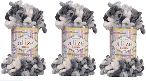 Alize Puffy Color Lot de 3 pelotes de fil à tricoter à la main, 100% micropolyester doux et épais pour couverture de bébé (300 g, 27,7 m) (5864)
