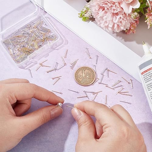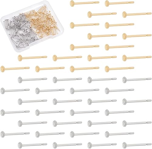 UNICRAFTALE 200 pièce 2 couleurs Clous D'Oreilles Plats Acier Inoxydable Plaquées Or 18 carats pour Boucles D'Oreilles Accessoires de Boucles D'Oreilles Plates Rondes pour Fabrication de Bijoux 2mm