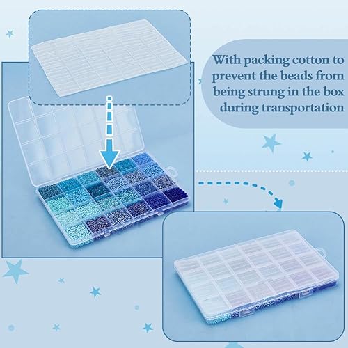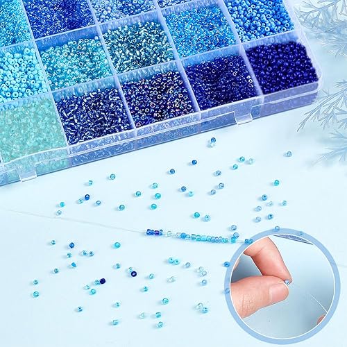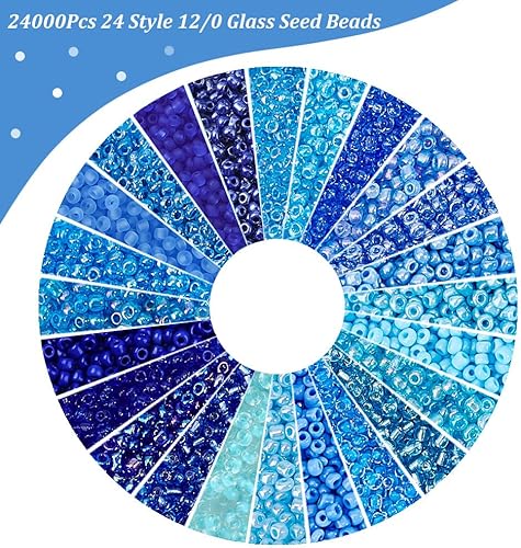 PH PandaHall 24000pcs 2mm Perles de Rocailles en Verre 24 Couleurs Perles Bleues Été Mini Perles Rondes Perles Intercalaires Perles de Taille pour Bracelet Colliers Boucles D'Oreilles de Mer d'été