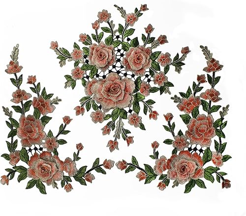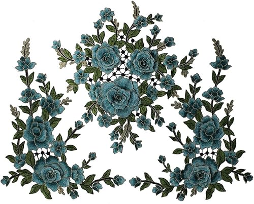 1 lot de 3 patchs brodés 3D en forme de fleur en dentelle doré métallique à coudre sur garniture en relief Accessoires de couture (vert)