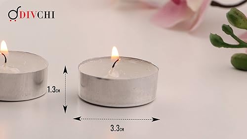 DIVCHI Lot de 100 bougies chauffe-plat en cire blanche non parfumée avec 4 heures de combustion Idéal pour les mariages, les vacances, la décoration de la maison