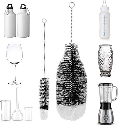 Lot de 2 Goupillon Bouteille Brosses de Nettoyage Brosse Bouteille Nettoyage Avancé pour Bouteilles en Verre Thermos Biberons Et Tasses.