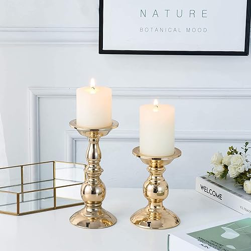 URCheers Lot de 2 bougeoirs dorés de style européen - Facteur classique - Pour chambre à coucher, salle à manger, salon, salle de bain, église, chandelier, mariage