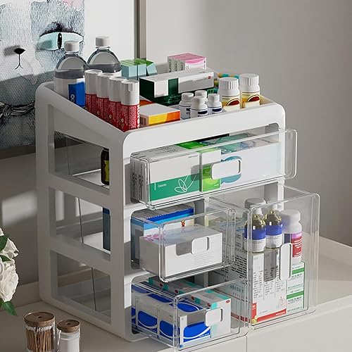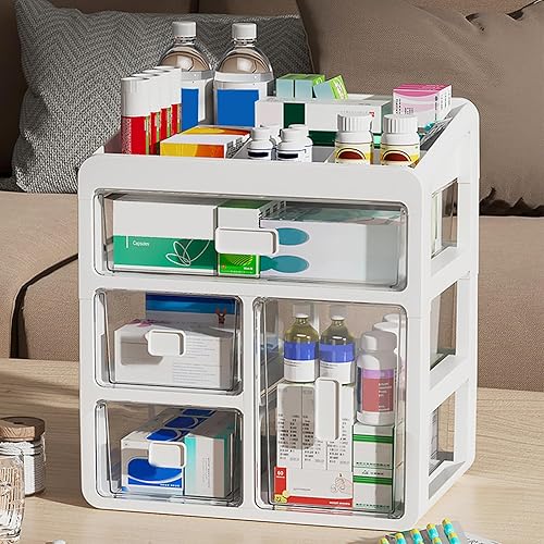 Nicoone Armoire à pharmacie - Type de tiroir à 4 niveaux - Grande boîte à médicaments - Boîte à pharmacie pour bureau à domicile