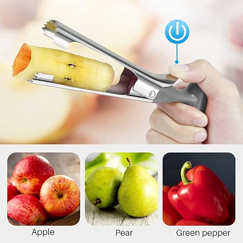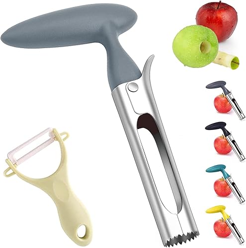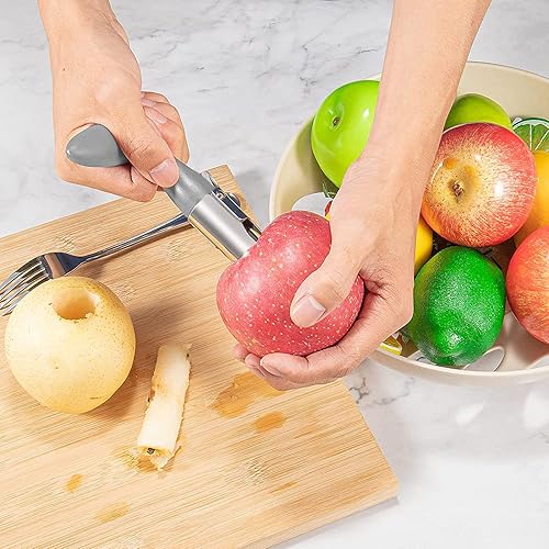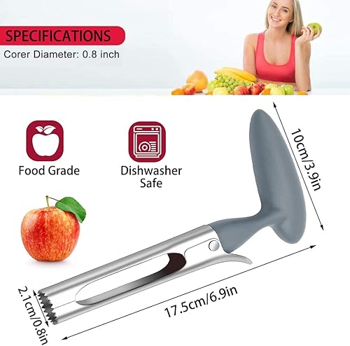 Vide Pomme Enleve Trognon Pomme Vide-Pomme Professionnel en Acier Inoxydable Avec Lame DenteléE Tranchante Et PoignéE D'Angle Ergonomique pour la Maison et Cuisine (Gris)