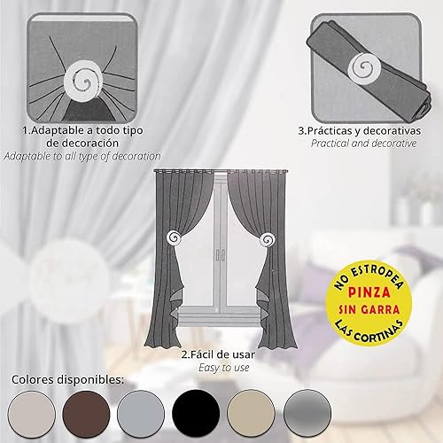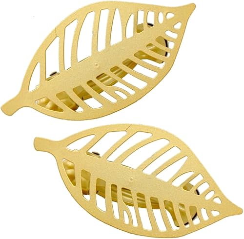 2 Embrasses, Pinces à Rideaux décoration en Metal, modèle Feuille Couleur Or Mat