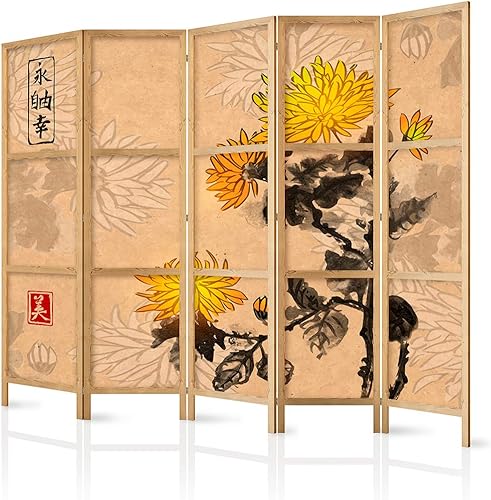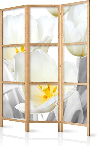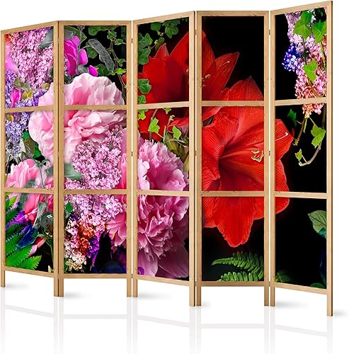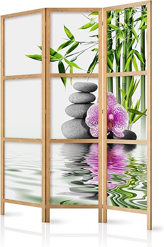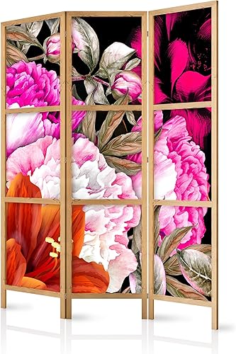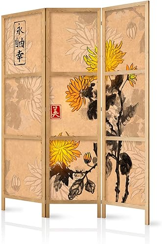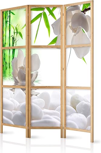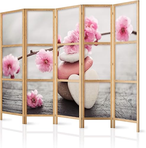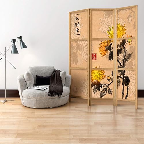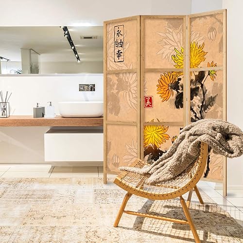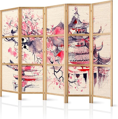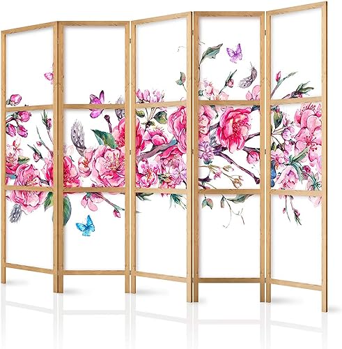 decomonkey 3 Panneaux Séparateur de pièce - 135 x 171cm Cerisier en Fleur Montagne Nature séparation intérieur pour décoration intérieure, Chambre à Coucher, Salon, Salle