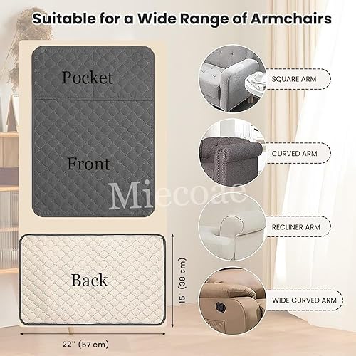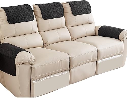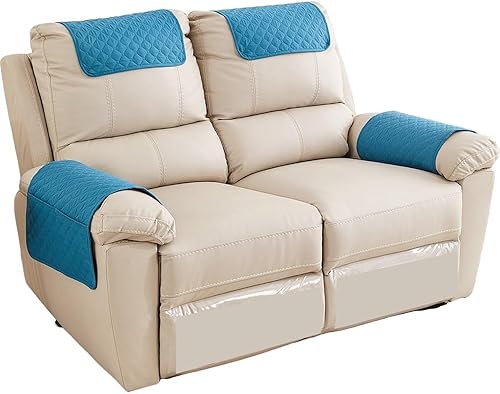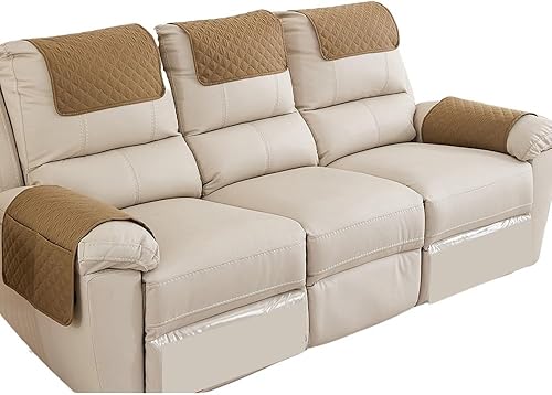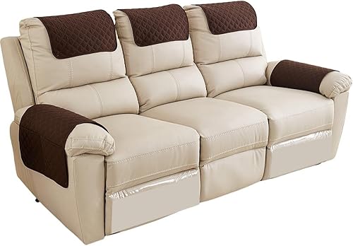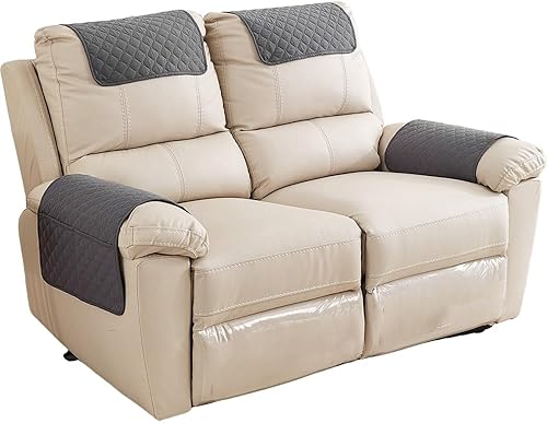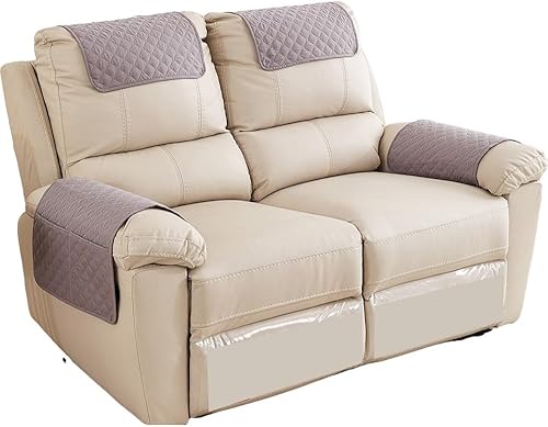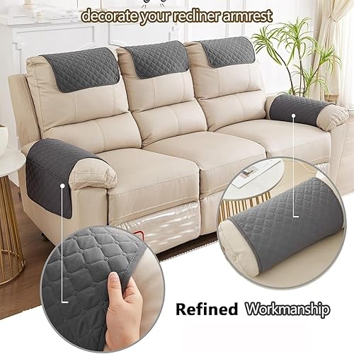 Miecoae Housse de Fauteuil Inclinable avec Appui-tête - Antidérapante et Lavable, Protégez de Canapé Inclinable avec Poches(Gris Clair,Set of 4)