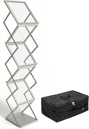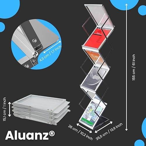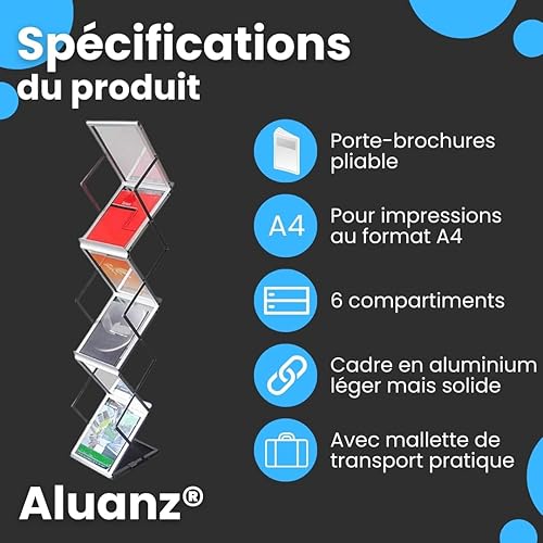 Aluanz Présentoir à brochures pliable 6 x A4 Porte-Brochures avec mallette de transport en aluminium, Présentoir Flyers A4 pour Affichage Magazines Journaux Foires Exposition - 38x26x145 cm
