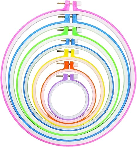 7 Pcs Cerceaux à Broder en Plastique 8 à 25 cm Cercles à Broder, Broderie Hoop Croix Plastique Cercle Point Hoop Anneau, Pour Travaux Manuels, Couture et Ornements