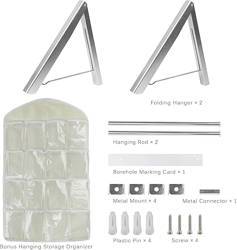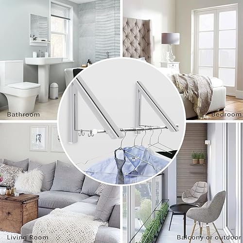 Cintre/système de séchage pliable à fixation murale pour économiser de l’espace - Lot de 2