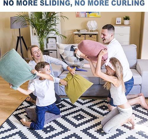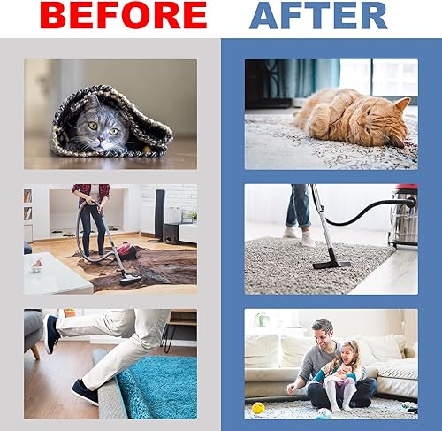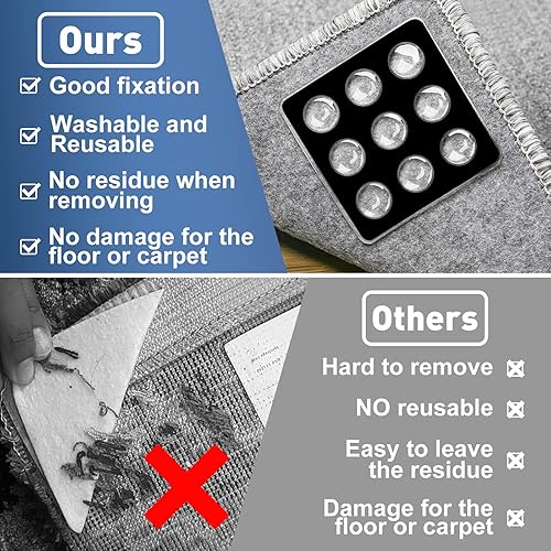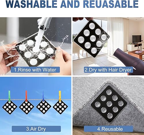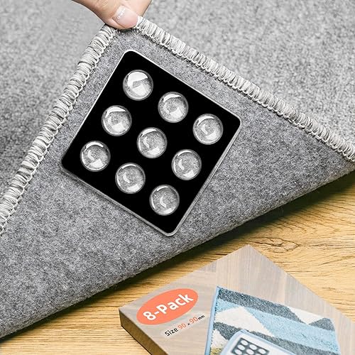 Fowooyeen Anti Derapant Tapis, 8 Pièces Silicone Rug Grippers, Adhesif Antidérapante pour Empêcher Le Tapis de s'Enrouler ou de se Déplacer, Bande pour Tapis Autocollant, pour Parquet, Carrée - Noir