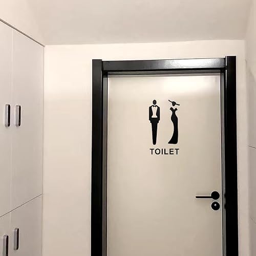 SGERUFZ Plaque de Toilette Homme & Femme, WC Sign pour Salle de Bain Dressing WC (Noir) (12×8 cm)
