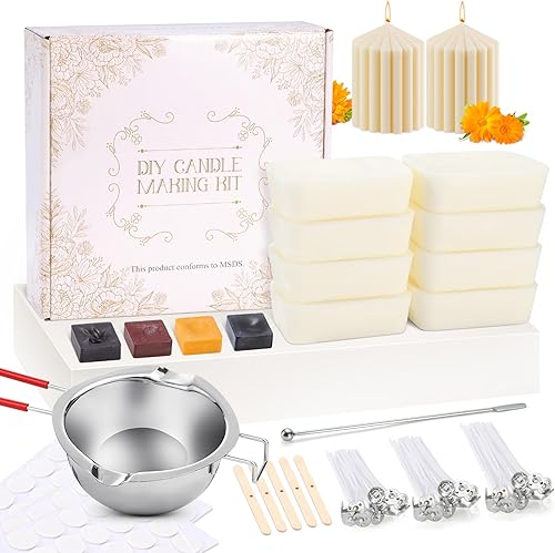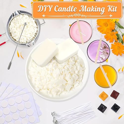Popolic Kit de Fabrication de Bougies, kit de Bougies Parfumées, kit de Bougies Artisanales par Aromatic Oil, Cire de Soja non Toxique, Autocollants, Mèches, Colorants Pour Pots.