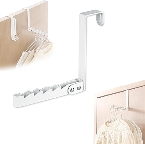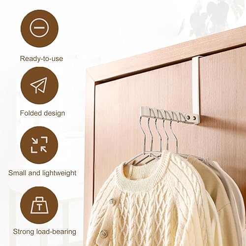 Porte Manteau Porte Sans Percage, Crochet de Porte, Crochets et Patères pour la Maison, Portant Pliable pour 5 Cintres, Crochet Cintres Multiples Gain de Place, Portemanteaux pour Entrée