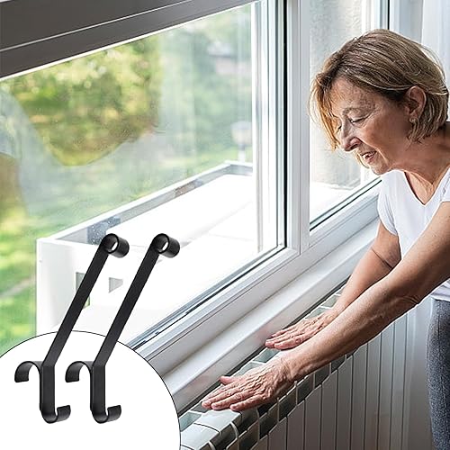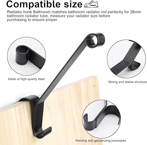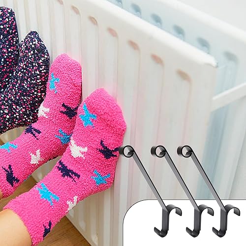 SHENGYIG 2 Crochets Universels pour Radiateur - Support pour Chaussures & Serviettes - Noir - Amovible & Réglable - Compatible Tous Radiateurs Standard (Sèche-serviettes)