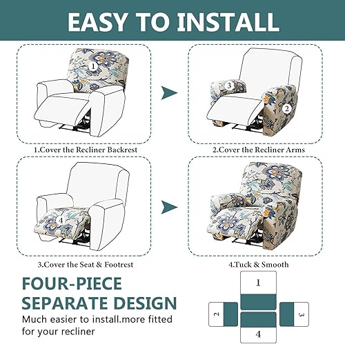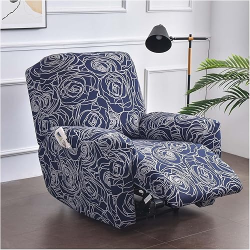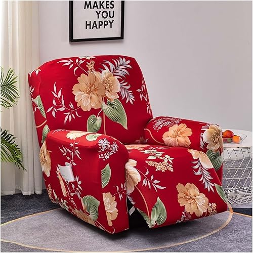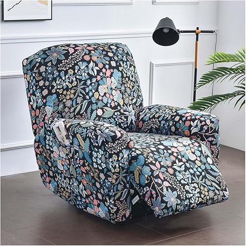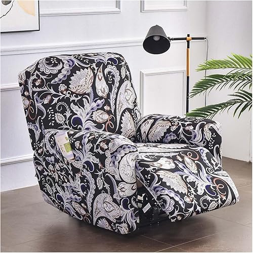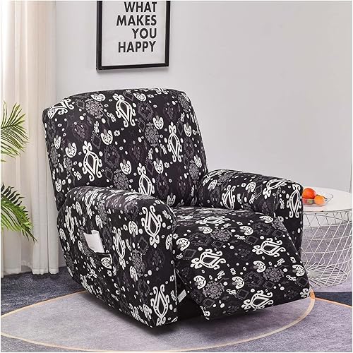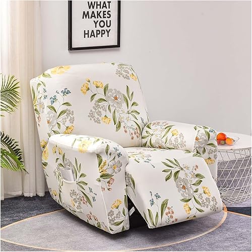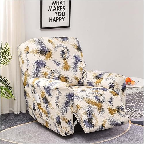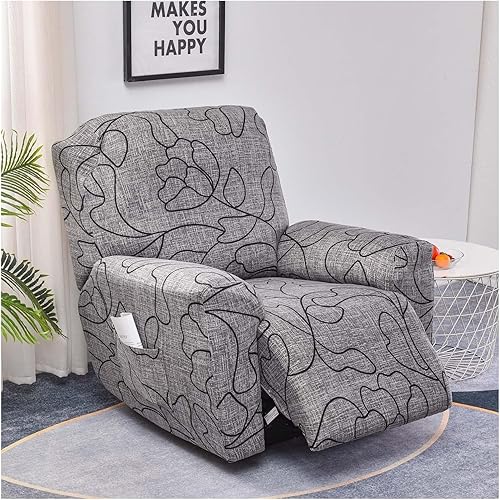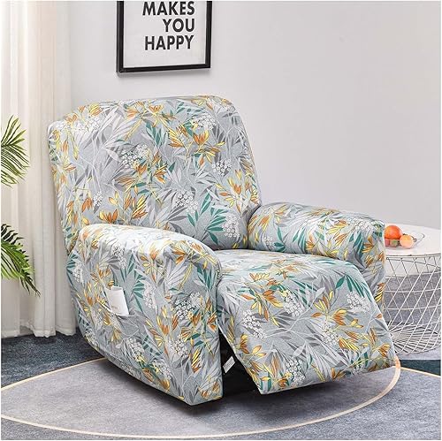 Yekuhe Housse de Fauteuil Relax Doux Extensible, 4 Pièce Housse de Canapé Antidérapante avec Poche Latérale, Protege de Meubles Lavable pour 1 Places Fauteuil Inclinable (Color : Style 29)