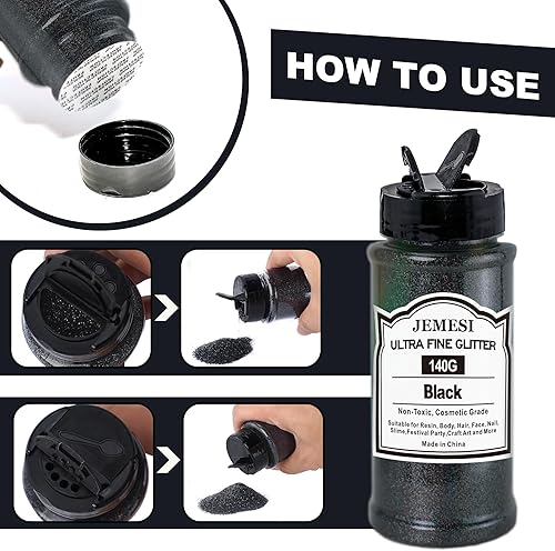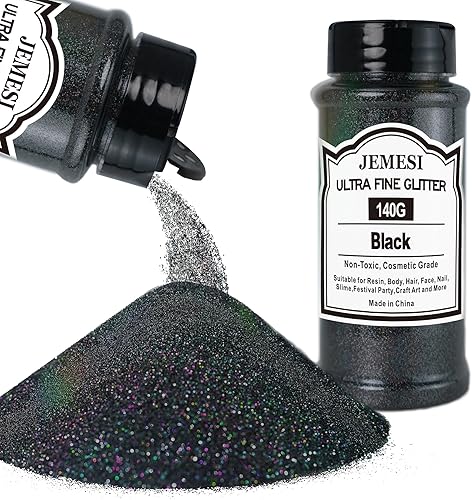 JEMESI Poudre de paillettes noires - 140 g - 0,2 mm - Poudre pailletée ultra fine pour résine époxy, bricolage, peinture tumbler, fabrication de bougies, paillettes cosmétiques, poudre à ongles