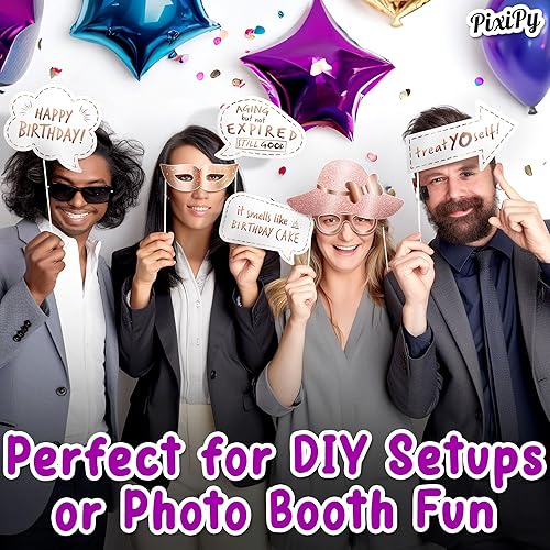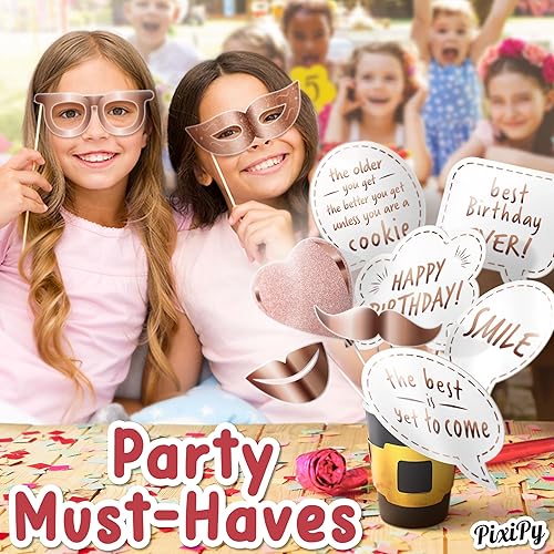 Kit d'accessoires pour photomaton d'anniversaire – 27 Blancs et Or Rose – Panneaux d'accessoires pour photobooth de qualité supérieure – Photos mémorables pour Les célébrations – par PixiPy