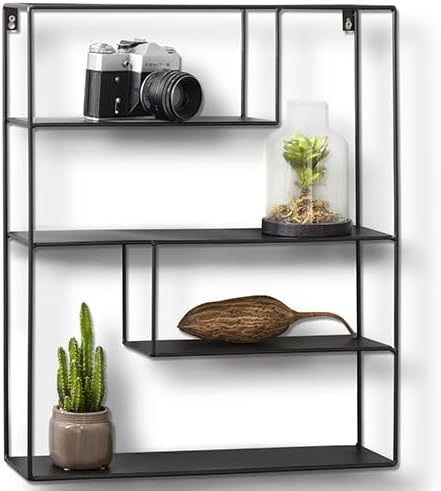 LIFA LIVING Étagère Murale Métal Noir, Bibliothèque Murale Rectangulaire, Etagère de Rangement à 4 Niveaux, Étagère Flottante Industrielle, 55 x 11 x 45 cm
