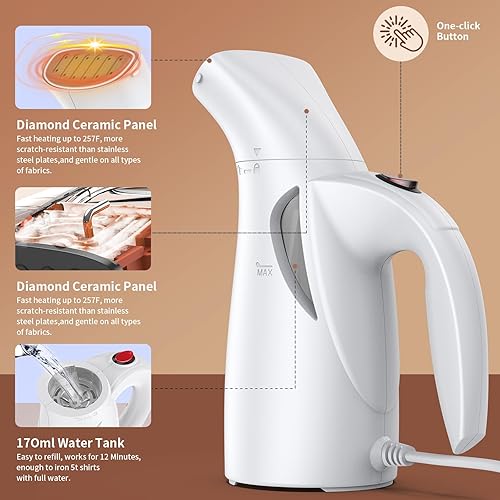 Défroisseur vapeur 700 W, 140 ml, pour enlever les plis, mini fer à repasser portable de voyage, réchauffeur 50 secondes, pour la maison, le bureau, les voyages, blanc